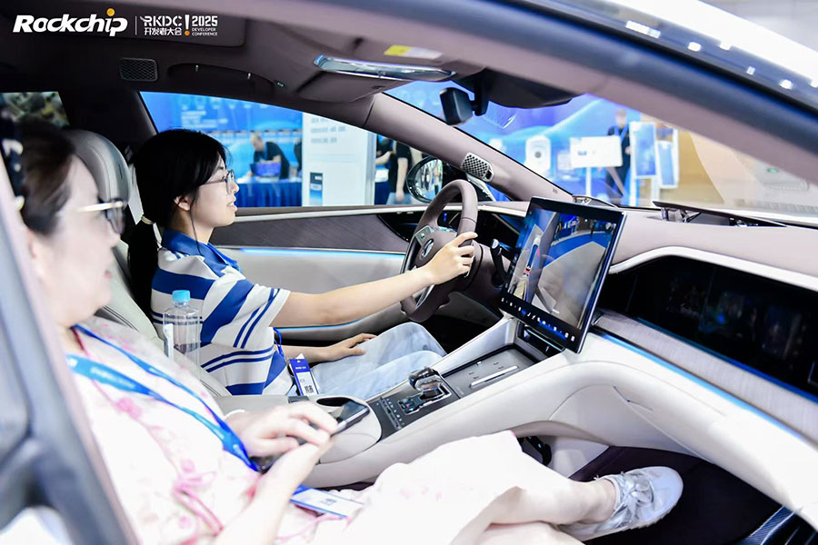 汽车电子展区,瑞芯微以车载应用全场景AI赋能之势亮相,聚焦智能座舱、车载音频、车载视觉、汽车域控等核心领域,覆盖前装及后装、商用及乘用的丰富应用形态,展出近百件最新产品包括汽车中控、3D液晶仪表、移动扶手屏、头枕互动屏、掌纹掌静脉识别、吸顶娱乐屏、车载VR、部标机、外置功放、桌面AI机器人等等。